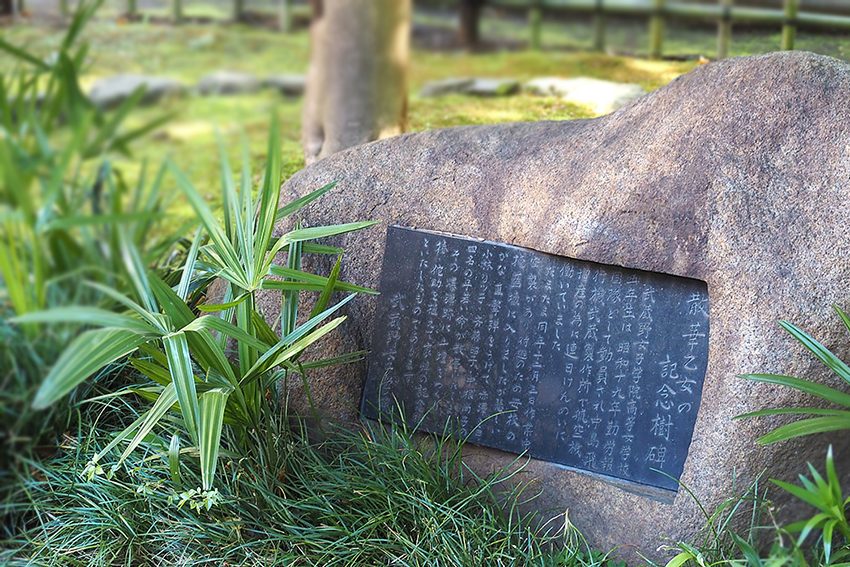 その話を聞きつけた石材商「石正園」のご主人が台石を寄贈してくださり、その台石に黒御影石の碑文を刻み、1978年(昭和53年)12月「散華乙女の記念樹碑」が建てられました。