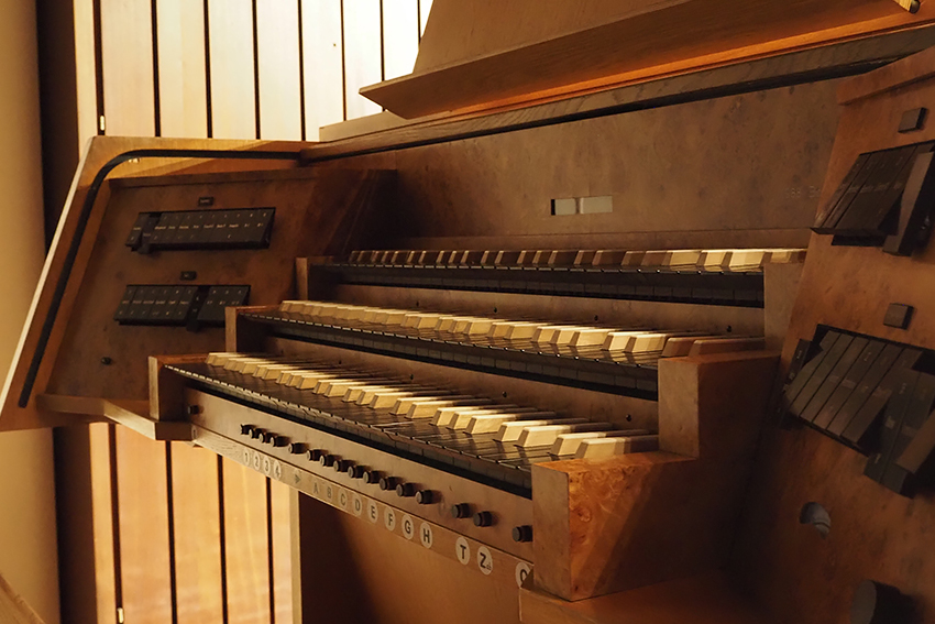 浄土真宗には、仏教の教えや信じる心のよろこびを歌で伝える「仏教讃歌」と呼ばれるものがあります。これは、明治時代に西洋音楽の影響を受けて生まれたもので、パイプオルガンの豊かで力強い音色に包まれることで、聴く人の心にいっそう深く響くものとなる、というワケです。