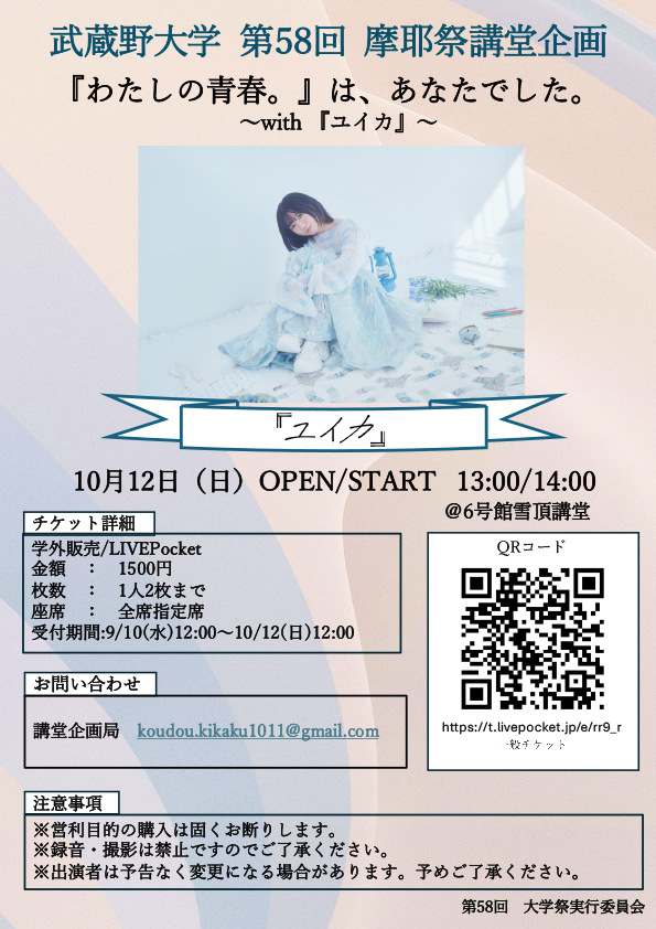 摩耶祭2日目の講堂企画に登場するのは、TikTokやYouTubeの「歌ってみた」動画でZ世代の共感を呼び人気に火が付いた『ユイカ』さんです!