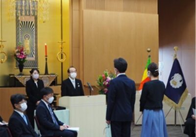 後期入学式は、オンラインでの開催となりました。西本学長の式辞に続き、入学者名簿の読み上げがあり、大学院生・大学生各代表が入学の辞を述べて終了。例年行う、献灯やお念珠と礼讃抄の授与などの式典を割愛しての進行となりました。