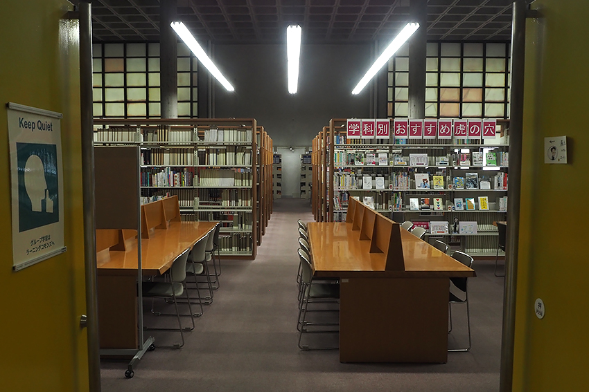 1973年に完成した武蔵野キャンパスの大学図書館。